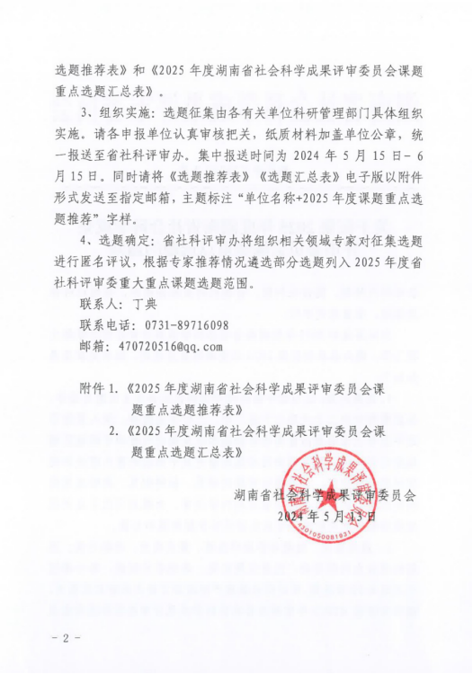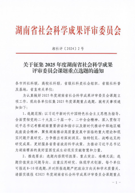 附件1:2025年度湖南省社会科学成果评审委员会课题重点选题推荐表.doc